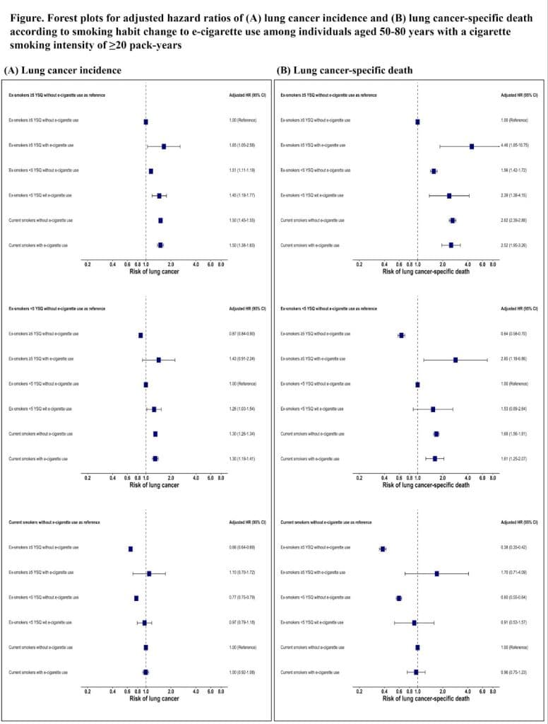 Los investigadores destacan que los exfumadores que habían dejado de fumar durante cinco años o más y usaban cigarrillos electrónicos mostraron un mayor riesgo de muerte relacionada con el cáncer de pulmón que aquellos que no usaban cigarrillos electrónicos. Entre aquellos que habían dejado de fumar hace menos de cinco años, los usuarios de cigarrillos electrónicos enfrentaron un mayor riesgo de cáncer de pulmón y mortalidad por la enfermedad en comparación con los no usuarios.